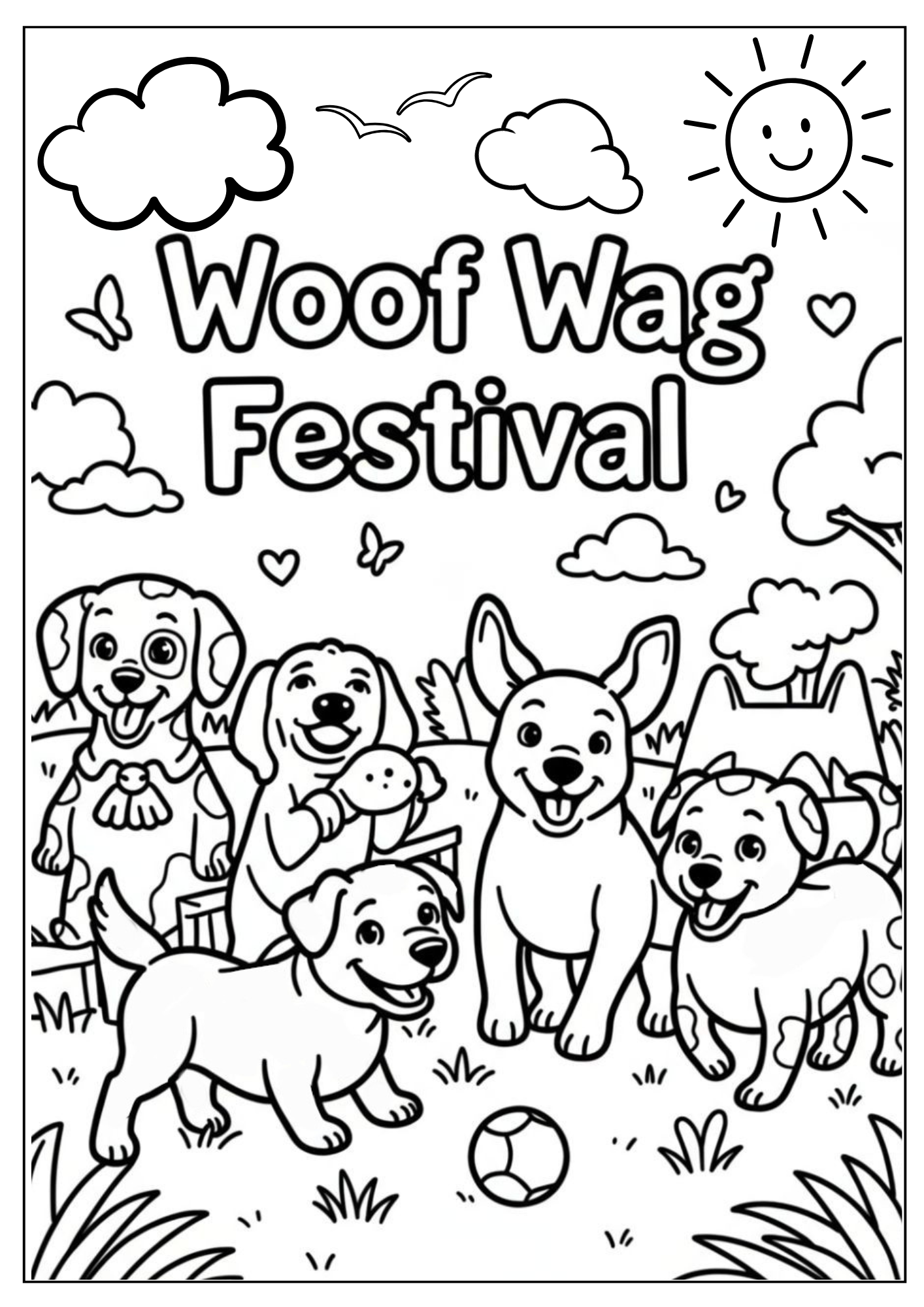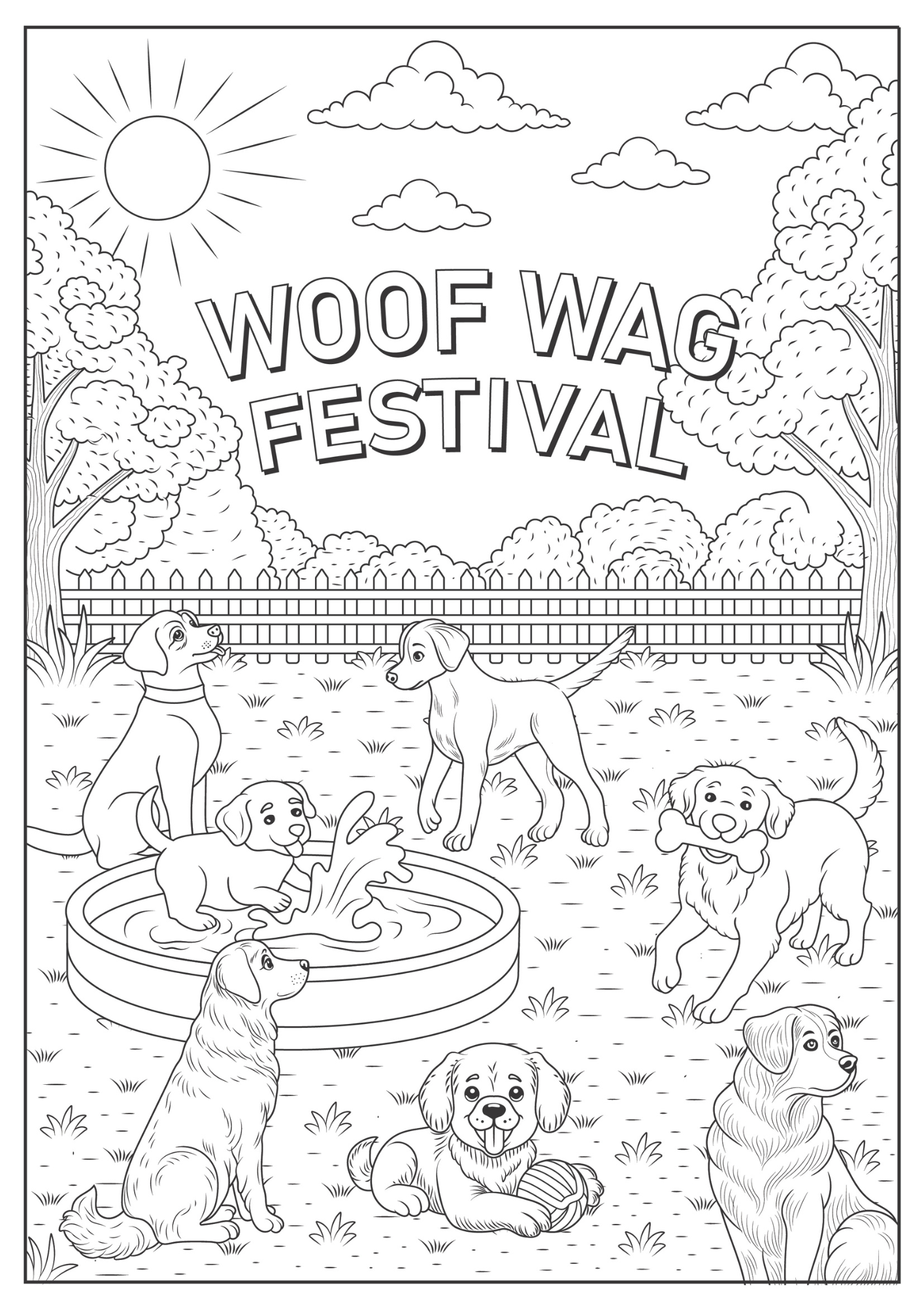 Print the Woof Wag Festival colouring page on standard paper for